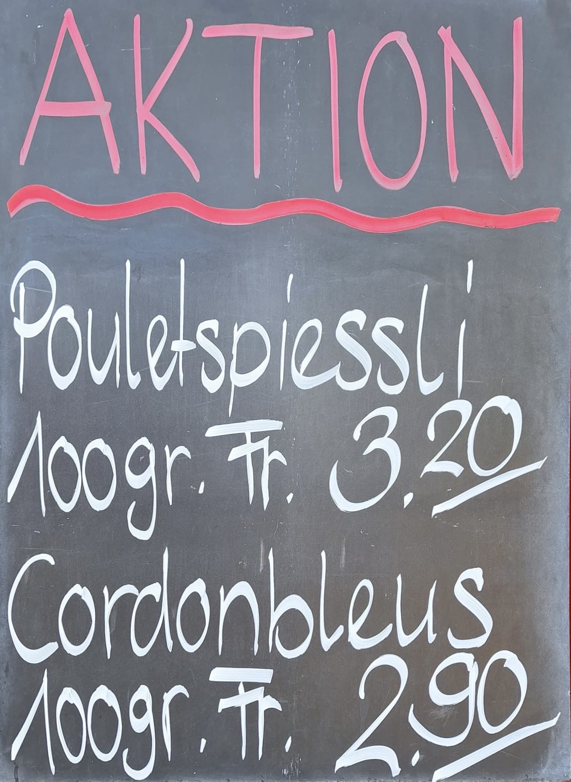 Aktion Pouletspiessli und Cordonbleus